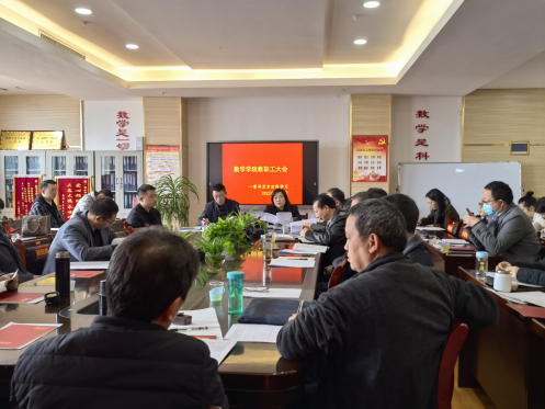 2022年3月4日,数学学院在执理楼313会议室召开了全院教职工政治学习会议,肖秋芳书记主持会议,田俊康副院长(主持行政工作)、王丹副书记、何军副院长以及学院全体教职工参加会议。
