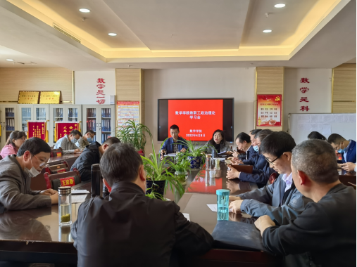 2022年4月8日,数学学院在执理楼313会议室召开政治理论学习会议,肖秋芳书记主持会议,田俊康副院长(主持行政工作)、王丹副书记、何军副院长以及学院全体教职工参加会议。