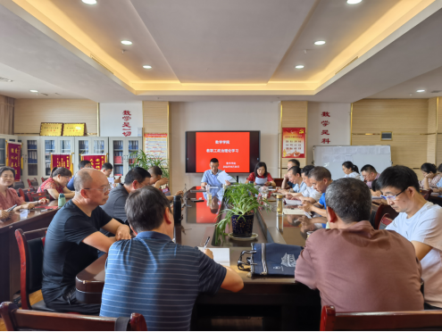 2022年6月30日,数学学院在执理楼313会议室召开政治理论学习,肖秋芳书记主持会议,田俊康副院长(主持行政工作)、王丹副书记、何军副院长以及学院全体教职工参加会议。