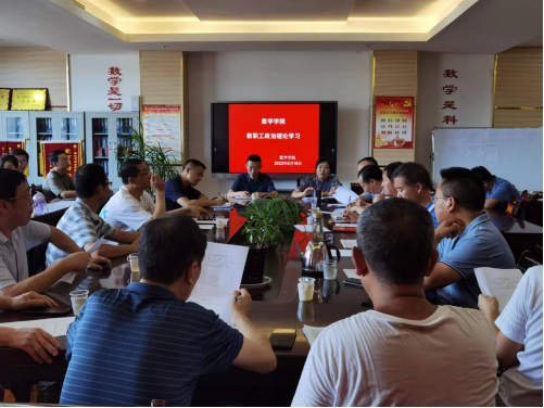 2022年8月19日,数学学院在执理楼313会议室组织开展政治理论学习,肖秋芳书记主持会议,田俊康副院长(主持行政工作)、王丹副书记、何军副院长以及学院全体教职工参加会议。