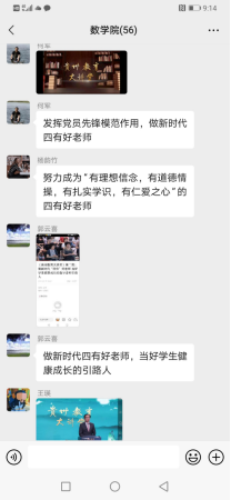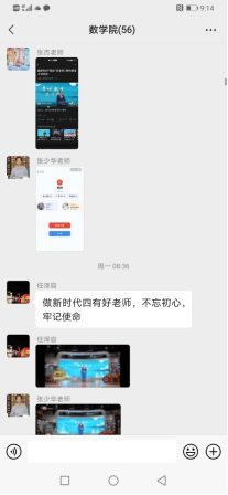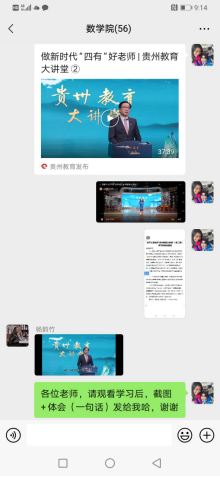 根据《关于认真做好“贵州教育大讲堂”(第二期)学习收看的通知》的要求,数学学院领导班子高度重视,并于6月28日晚组织全体教师以自学的形式,认真观看了贵州大学党委书记李建军教授主讲的《做新时代“四有”好老师》。