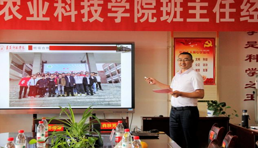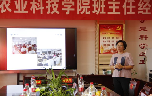 随后,生物与农业科技学院班主任黄家春、韩畅,数学学院班主任张转周、王瑛四位老师从学生工作的不同方面作了交流发言,内容涉及班级管理、学风建设、班级荣誉、竞赛获奖、发展党员、考研率就业率等方面,充分反映出班主任在学生成长成才上的核心领导作用,也展现了各位老师尽心尽力为学生成长和发展呕心沥血,他们不忘初心,在教学中以德服人,对每位同学做到有爱心、耐心、责任心、宽容心、细心。