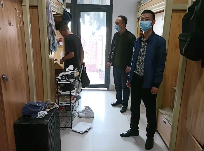 4月8日,数学学院走访励志楼、行义楼学生宿舍,了解寝室安全、疫情防控措施落实等情况。本次走访由数学学院党总支书记肖秋芳、副院长(主持行政工作)田俊康、党总支副书记王丹、副院长何军带队,全体辅导员参加。