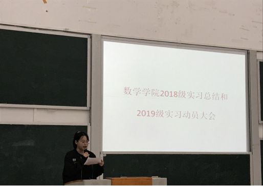 2022年6月8日15:50,数学学院于执宏楼104教室召开2018级实习总结大会暨2019级实习动员大会。数学学院党总支书记肖秋芳、党总支副书记王丹、副院长何军、学生科相关老师、班主任老师以及2018级、2019级学生参加了此次大会。会议由2019级统计本科班李予慈主持。