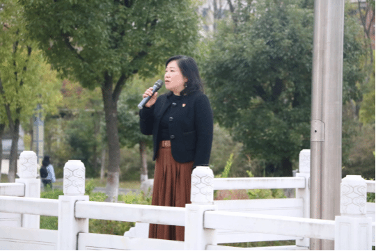 随后,数学学院党总支书记肖秋芳作国旗下的讲话。她强调:“少年兴则国兴,少年强则国强。同学们是青年一代,生在国旗下,长在春风里,在良好的环境里生活学习,要以学业为重,爱国爱校,肩负起历史使命和时代任务,将个人追求与崇高理想相结合,为社会发展作出应有的贡献。”