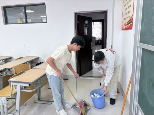 2023级数学本科班蔡维国作为此次活动志愿者,带头对教室卫生的“重灾区”——后排垃圾桶及周遭区域进行深度清理,他说,“教室卫生关系到每一位同学的身体健康,我们必须认真对待,同时也希望大家都加入到爱护教师卫生和校园环境的行动中来。”
