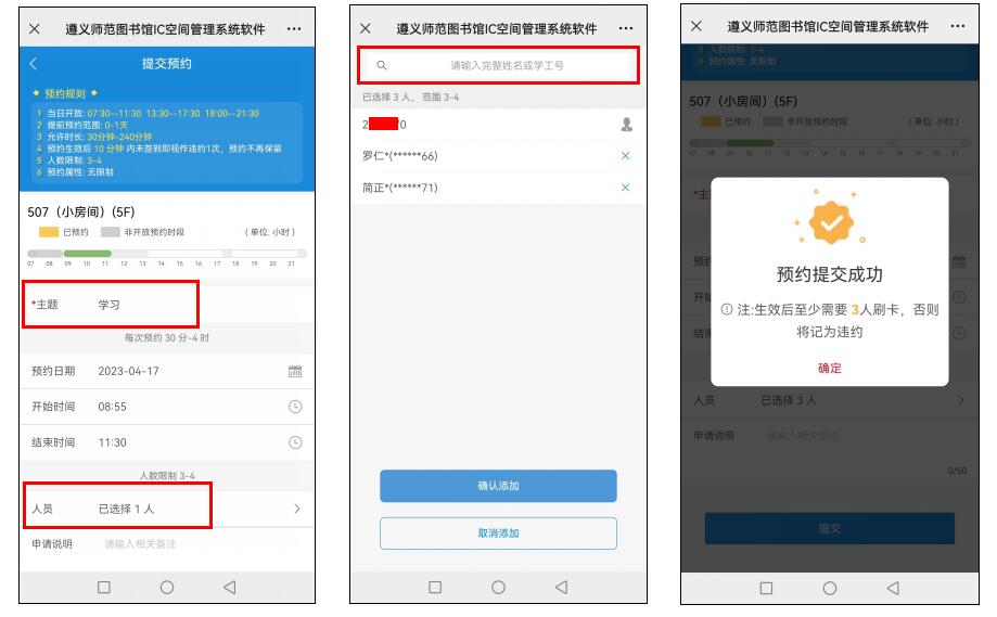 2、预约签到人数不达标:比如小房间最低需3人在规定时间内刷卡签到,否则将判定主预约人1次违约,扣除积分1分。