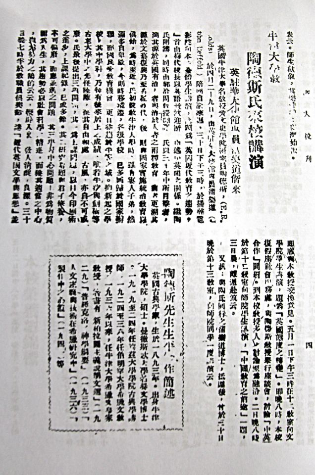 文军长征——浙大西迁研究|第三期:陶德斯与遵义浙大 2021-04-22 10:49访问: 本文作者:陆昌友编者按:浙大西迁遵义办学七年期间,英国牛津大学的陶德斯先于剑桥大学的李约瑟考察访问了西迁浙大,1943年4月,陶德斯到遵义参观考察西迁浙大,在短短的4天时间里,陶德斯与浙大师生近距离接触、交流,对艰难办学且成绩斐然的浙大给予极高的评价,认为真的就是中国一流的大学。他提醒后来者李约瑟:“有一所学校你千万不要漏掉,那就是浙江大学。”李约瑟在参观考察后称誉西迁浙大为“东方剑桥”。本期,我们...