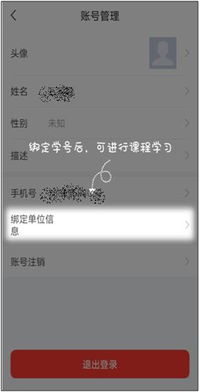 登录后,进入“我—设置—账号管理”界面,查看单位处是否显示“微信买球官方网站”及自己的学号/工号,若未显示,需要“绑定单位信息”或点击单位右边的+号,进行单位和学号/工号认证。
