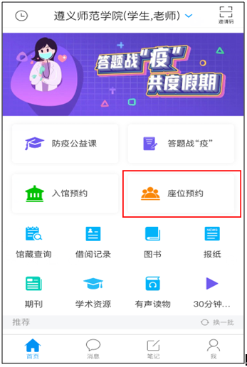 A.预约选座:首页“选座预约”按钮,选择需要预约的时间、区域、座位进行预约,适用于有明确目标座位的预约情形。