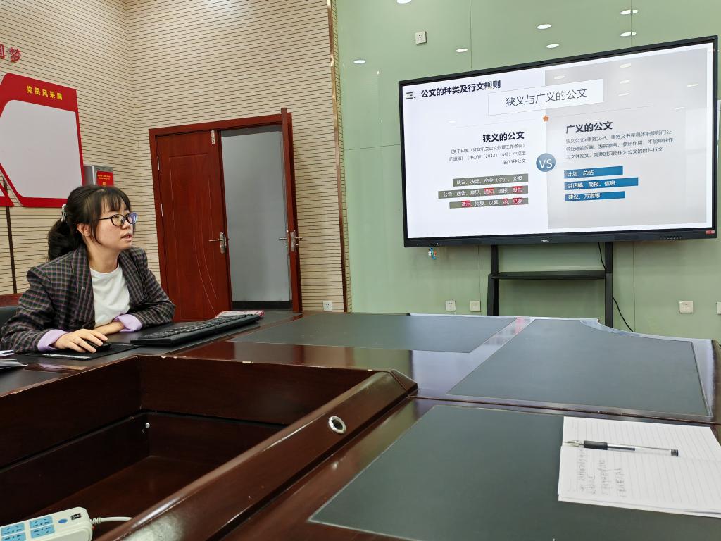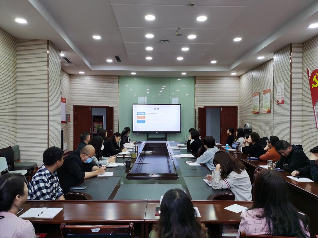 2023年6月16日,图书馆在314会议室举办2023年第六期专业培训,本期讲座主题为《办公室公文写作分享》,由综合服务部刘小芹老师主讲,全体馆员参加。