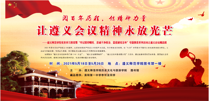 在喜迎中国共产党成立100周年,学校深入开展党史学习教育之际,2021年5月18日-5月26日,图书馆与历史文化与旅游学院联合举办了遵义会议藏品展。