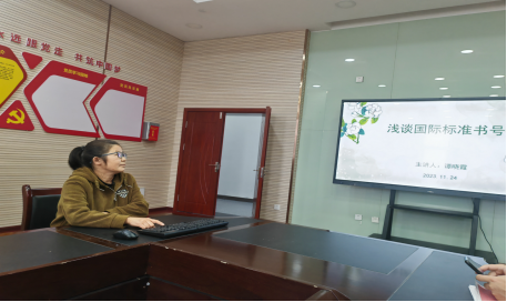 2023年11月24日,图书馆在314会议室举办2023年第九期专业培训,本期讲座主题为《浅谈国际标准书号》,由采编部谭晓霞老师主讲,全体馆员参加。