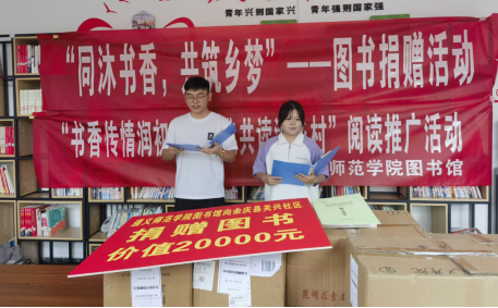 本次活动在余庆县关兴社区开展,活动内容为“同沐书香,共筑乡梦”图书捐赠、“烽火滇缅路,薪火永相传”图书阅读分享、乡村图书室业务指导。关兴镇党委副书记袁振中、图书馆馆长蓝卡佳、人文与传媒学院党总支书记丁亮、院长罗宏梅,以及图书馆党总支委员、科级以上干部,人文学院部分老师、关兴社区全体干部、驻村工作队参加了活动。