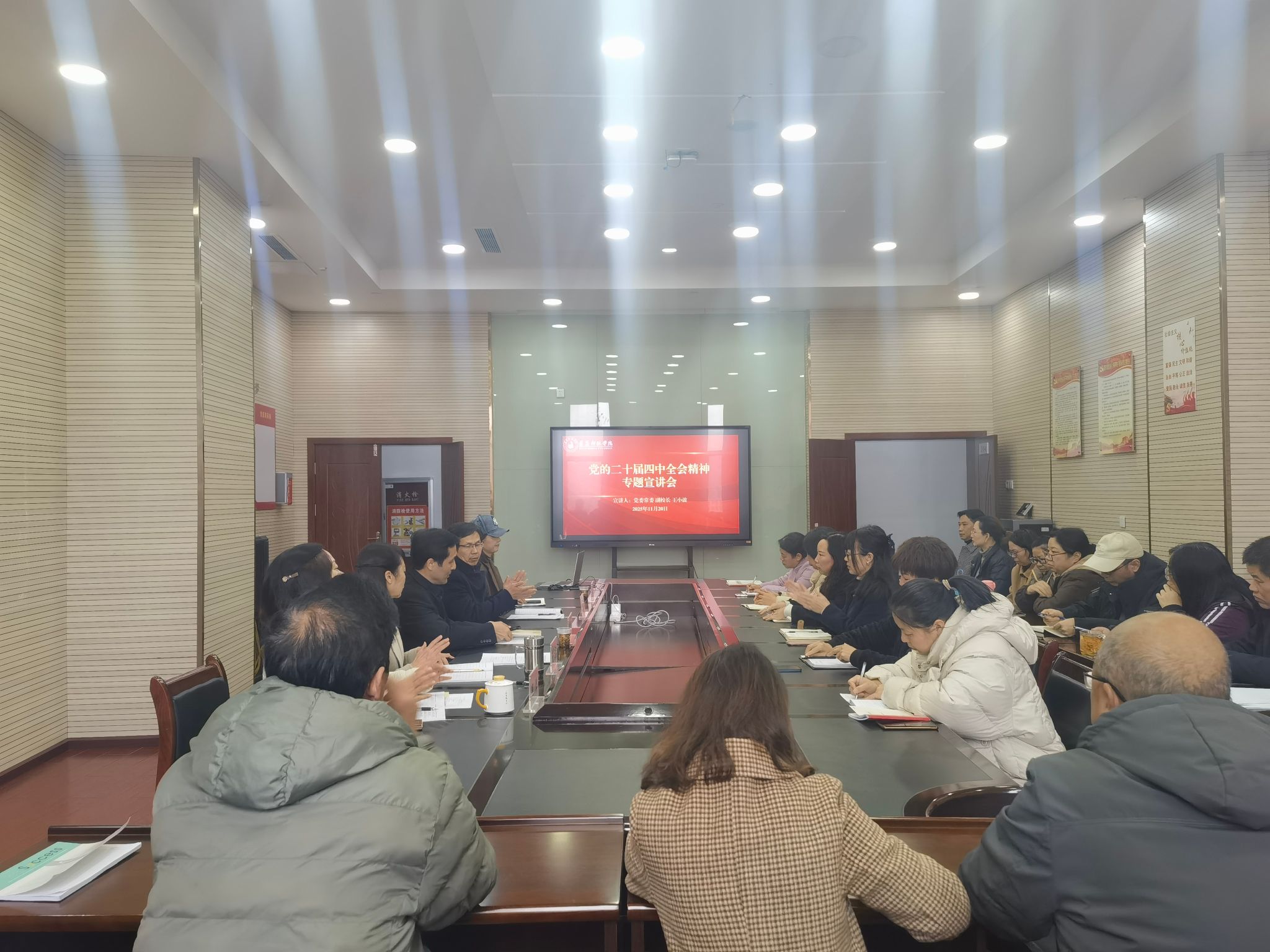 11月20日下午,学校副校长王小波在图书馆314会议室为图书馆全体教职员工宣讲党的二十届四中全会精神并列席指导图书馆党委理论学习中心组学习会。