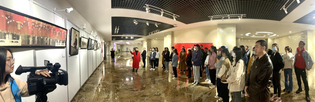 图书馆党总支书记罗良金表示,画作通过艺术形式直观地展示历史,具有极强的艺术感染力。在新中国成立至今的发展中涌现出许多英雄人物,我们要继承好、发扬好革命先辈的精神,胸有家国情怀,为中华民族的伟大复兴不懈努力。