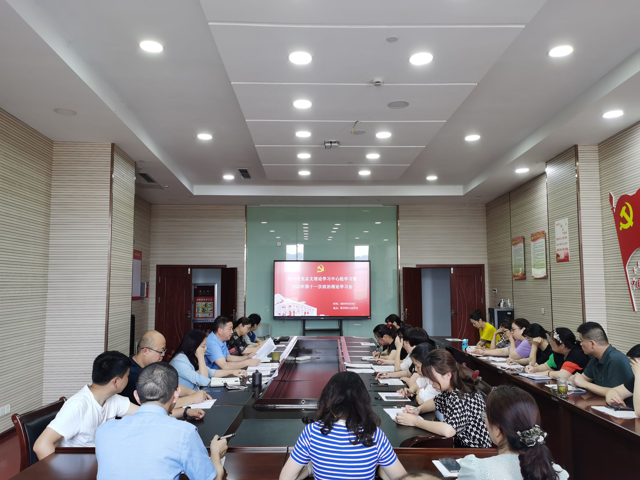 6月30日,图书馆党总支理论学习中心组暨2023年第十一次政治理论学习会在314会议室召开,全体党员参加、非党员列席会议。党总支书记罗良金主持会议。