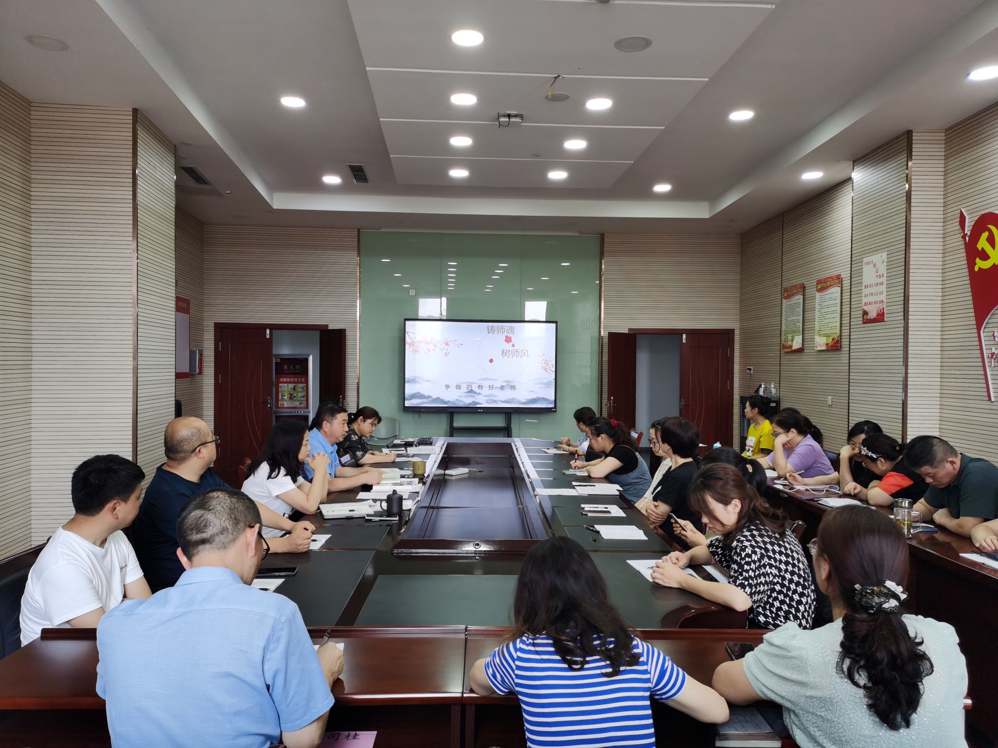 会议指出,作为党员,大家需要在各方面严格要求自己,为健全全面从严治党体系,推动新时代党的建设新的伟大工程向纵深发展贡献自己的一份力量。作为老师,我们要注意自己的言行举止,不做违法乱纪的事,做一个有理想信念,有道德情操,有扎实学识,有仁爱之心的“四有”好老师。