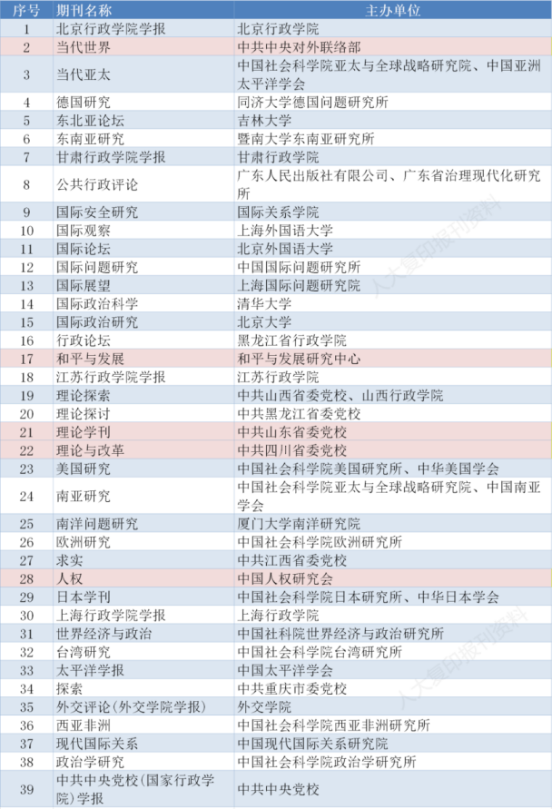 新增:公共管理与政策评论、治理研究、中国科学院院刊