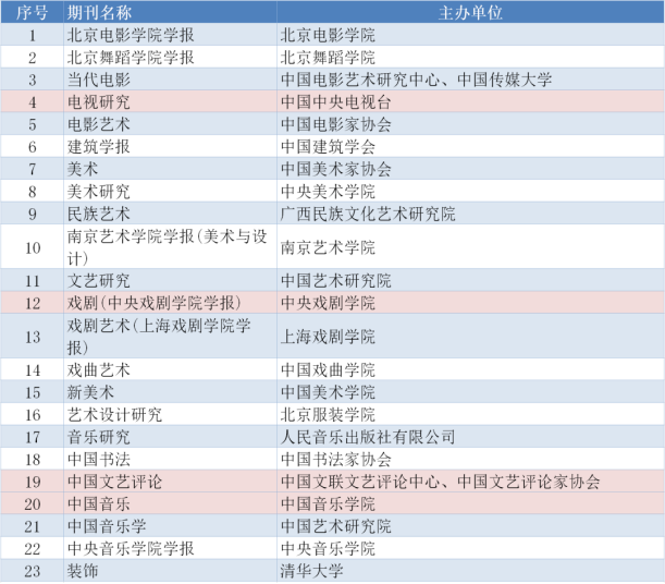 新增:电视研究、戏剧(中央戏剧学院学报)、中国文艺评论、中国音乐