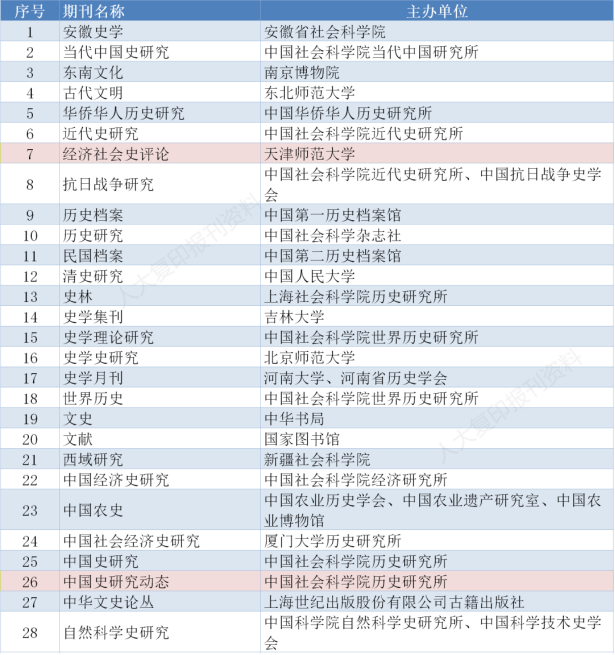 新增:出土文献、历史地理研究、中国边疆史地研究(原属于历史学)、敦煌研究(原属于考古学)、中国历史地理论丛(原属于历史学)