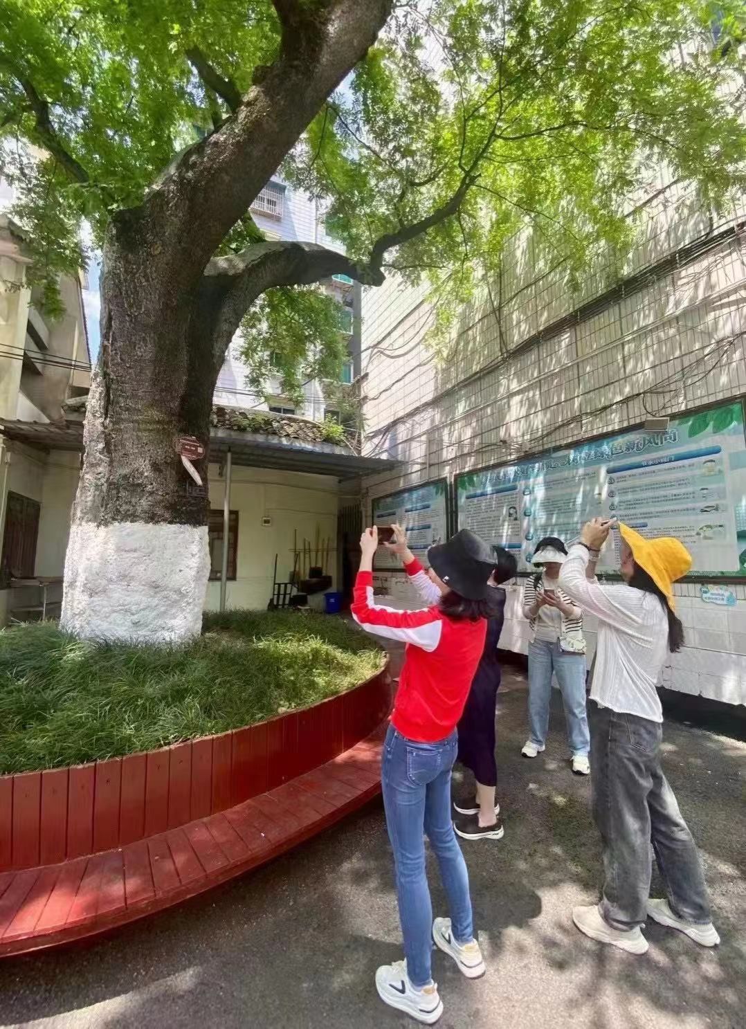 在遵义四中政教主任李芳老师的带领下,笔者随同张莉一行来到这棵已有一百五十年树龄的皂荚树下。眼见这棵枝繁叶茂的大树已作为古树名木挂牌保护并由共青团红花岗区团委、红花岗区林业局认养时,王淦昌在遵义居住地的寻找,总算有了着落,大家都在心底感到欣慰。