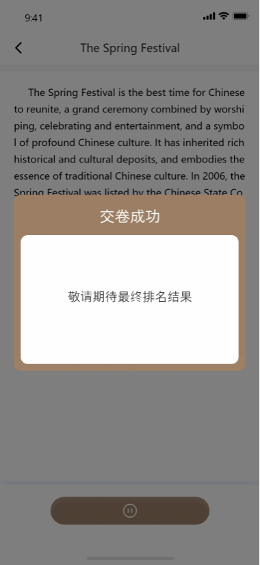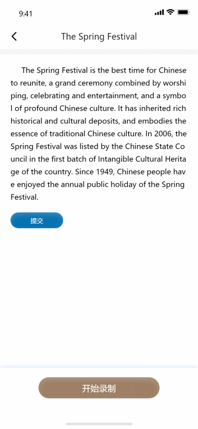活动期间每天更新 1 篇传统文化英文内容,参与者需要用英文进行配音,每次配音最高分为100分,每天有10次配音机会,每天只取最高记录。