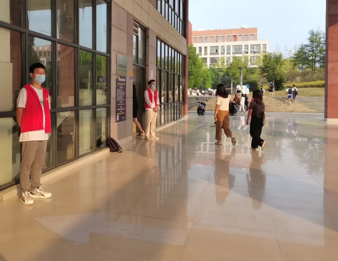 买球同心,志愿同行。从早八到晚九,学生会志愿者在执闳楼各通道,利用课间时间监督进出教学楼的同学佩戴好口罩,同时提醒同学从正确入口进出,维护上下课高峰期的出入秩序,为教学楼防疫工作把好关。