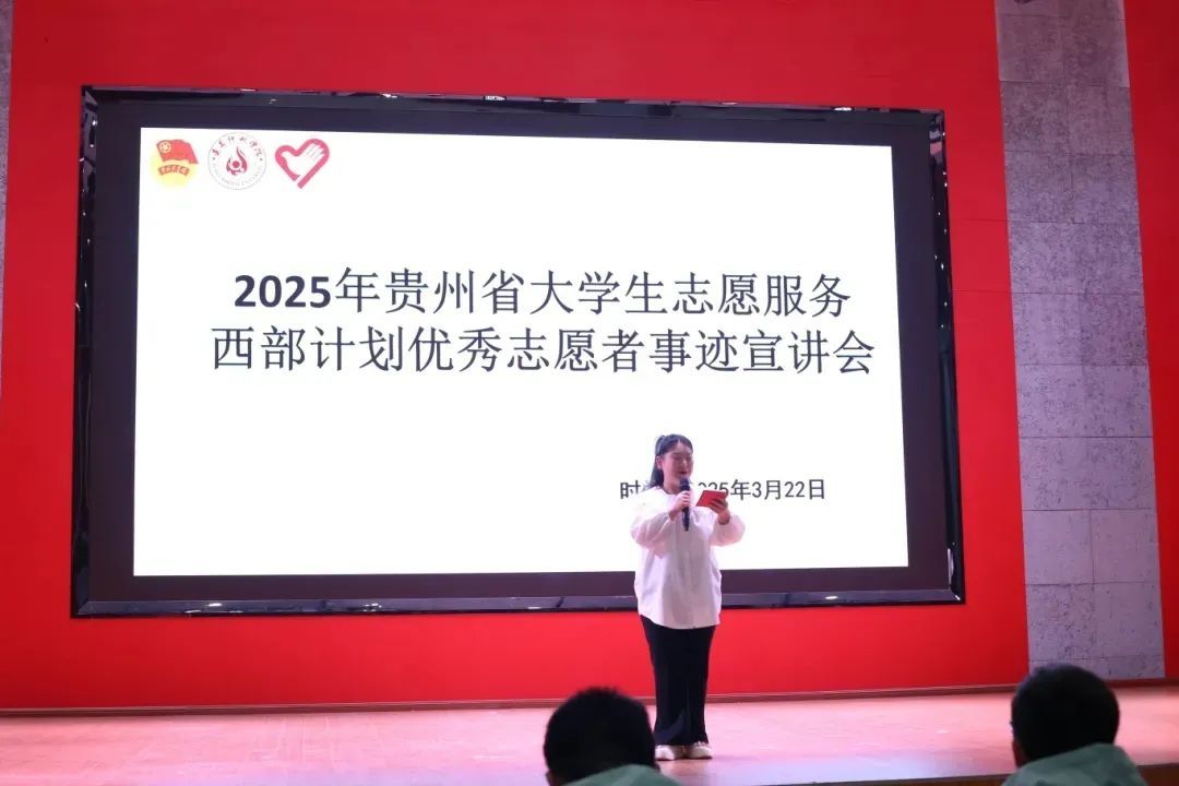为进一步扩大万名大学生志愿服务西部计划乡村振兴基层项目的影响力、吸引力、号召力,宣传西部计划优秀志愿者事迹,鼓励青年学子以优秀志愿者为榜样,牢记青春使命,勇担时代重任。3月22日,买球邀请了贵州省西部计划项目办何怡、贵州望谟、铜仁服务的西部计划志愿者胡宸龙、李明佳在长征讲堂开展了2025年贵州省大学生志愿服务西部计划优秀志愿者事迹宣讲会,300余名同学参加本次宣讲会。
