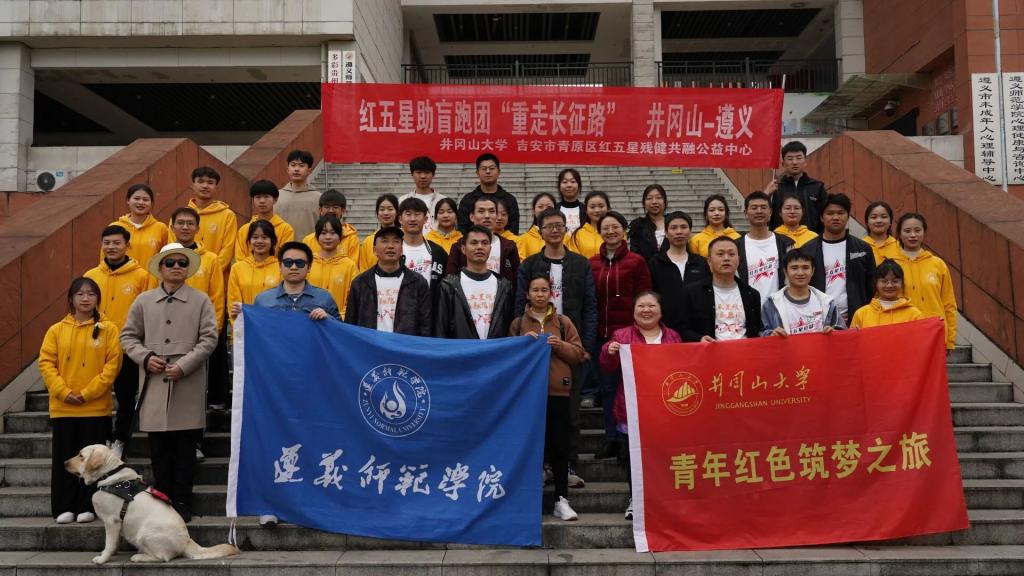 2023年3月25日,来自井冈山大学红五星助盲跑团的指导老师胡亮与11位志愿者陪同9位视障运动员来到买球,与买球团委、红十字会以及青年志愿者服务中心的师生进行助盲志愿服务交流活动。校团委科技实践部主任、校红十字会副秘书长唐玮以及19位青年志愿者参加交流活动。