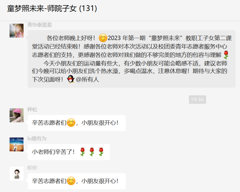 本期活动获得了教职工家长们的一致好评,而这也是给予志愿者最好的回报,同时他们也收获颇多。