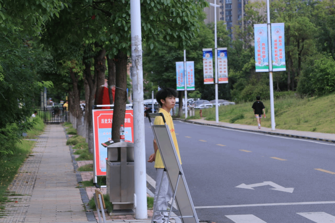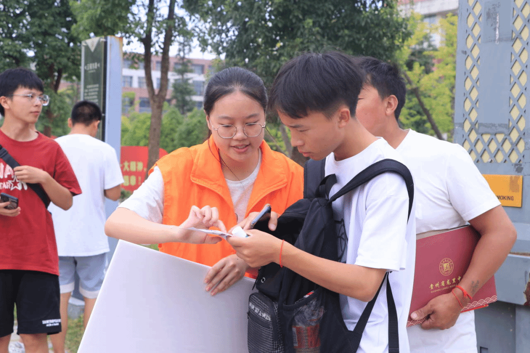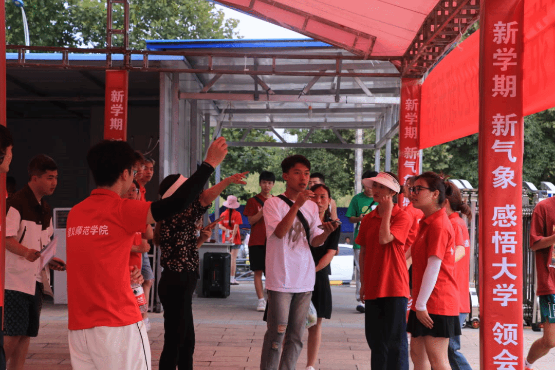 即使烈日悬顶、热浪铺面,志愿者们也仍然守候在自己的岗位,始终保持着灿烂、真挚的笑容和贴心的服务,充当着新生们的“人工导航”和“校园生活百科数据库”。