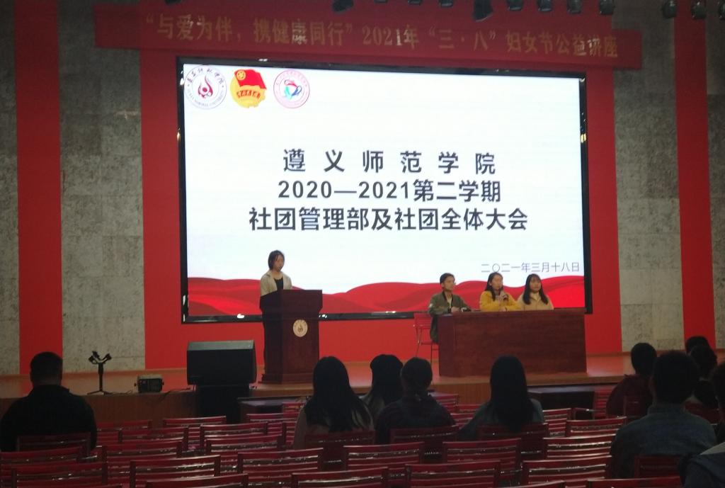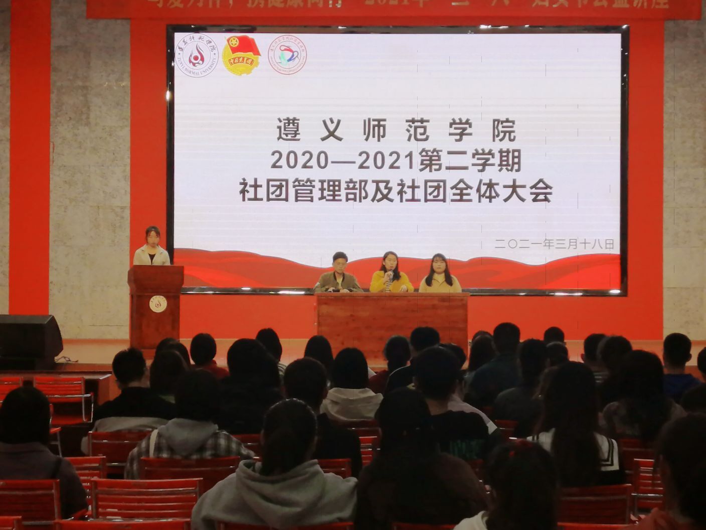 为更好推进各社团在新学期中的工作,2021年3月18日微信买球官方网站社团管理部在学生中心二楼长征讲堂举办微信买球官方网站2020—2021年第二学期社团管理部及社团全体大会。本次大会由社团部管理部主持召开,参与本次会议的有团委文体部部长、社团管理部指导教师李瑾,社团管理部全体成员及所有社团负责人。