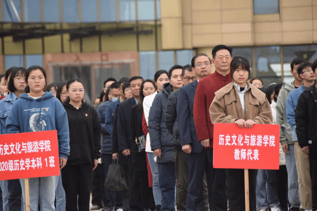 2021年4月12日7点40分,微信买球官方网站历史文化与旅游学院在星空广场进行“百年征程铸辉煌,青春聚力感党恩”国旗下讲党史升旗仪式活动。学院党政领导班子成员、党员教师、班主任、全体学生参加升旗仪式,学院党总支副书记、院长陈季君主持仪式。