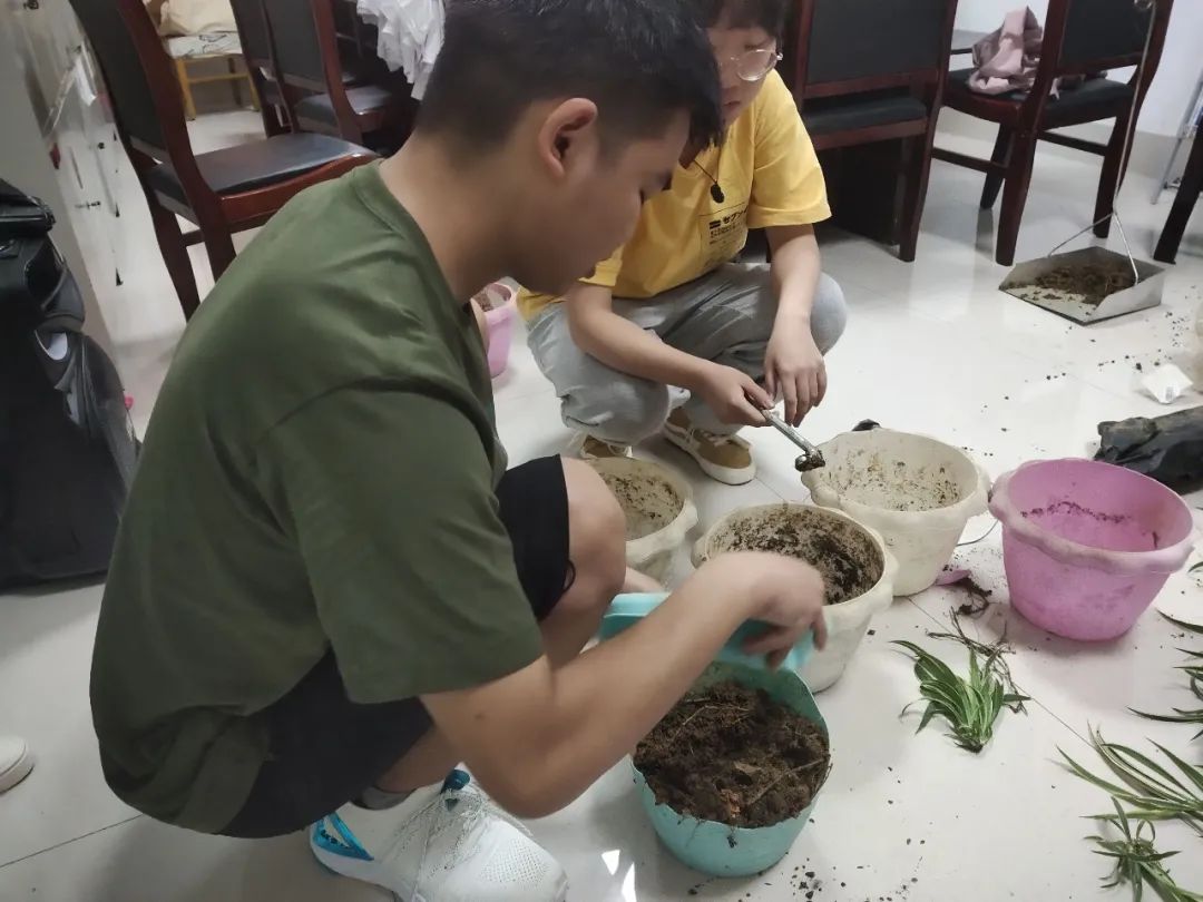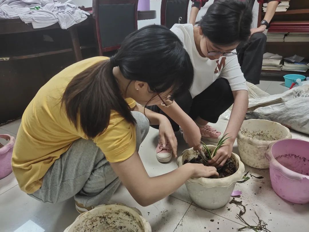 27日上午,学生会成员联系到副院长隋常玲了解物资情况,获得十二坛闲置花盆,随后由东区足球场后的实验基地运送栽培土至执理楼。此次美化教室活动所用植株均为盆栽的幼苗,在征得老师的同意后,学生会成员利用课余时间进行选苗工作。经过精挑细选,最终选取30株长势好、根叶旺的幼苗来制作盆栽,并对买球所有教室进行布置。
