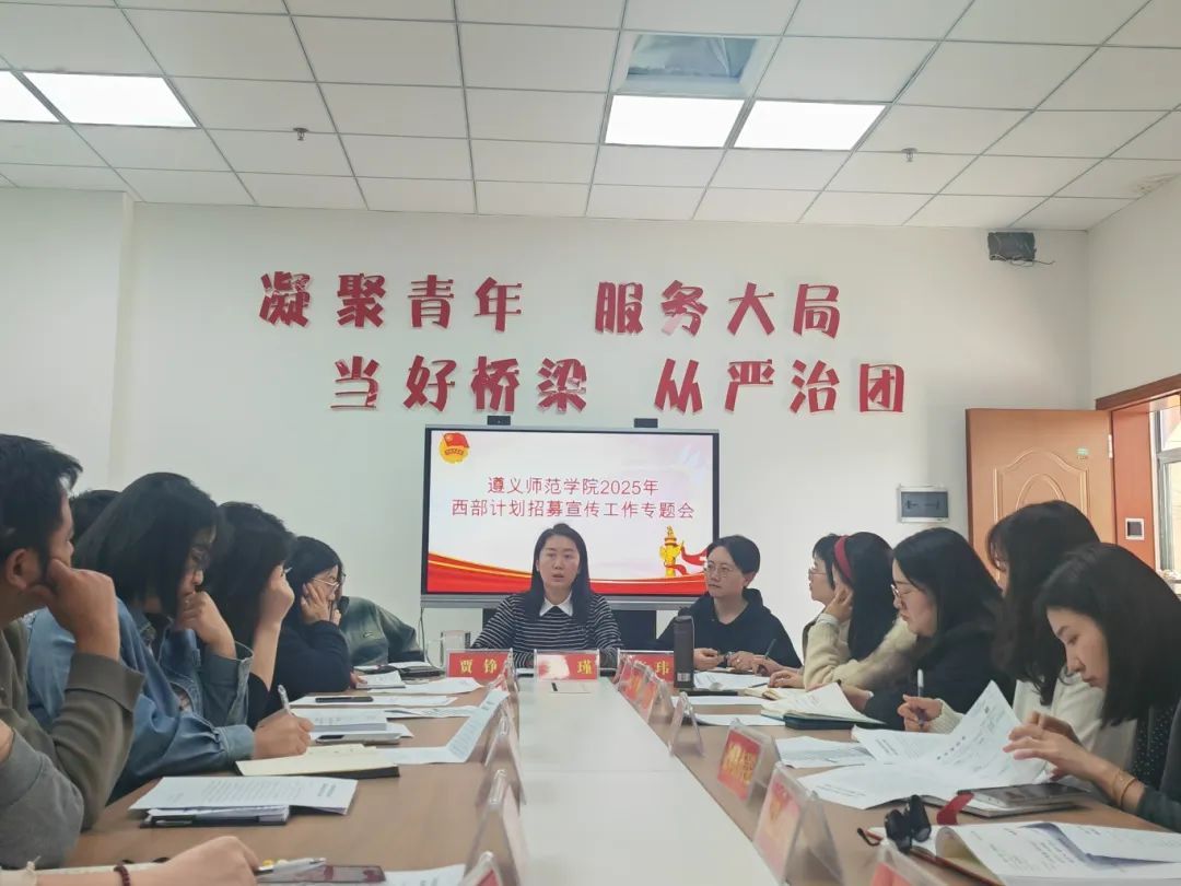 3月25日,校团委根据2025年贵州省大学生志愿服务西部计划招募宣传工作部署会的要求,校团委副书记李瑾主持召开买球西部计划招募宣传工作专题会,团委全体教师、二级学院团总支书记(负责人)参会。