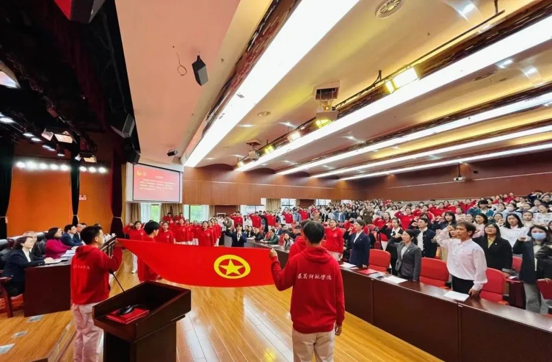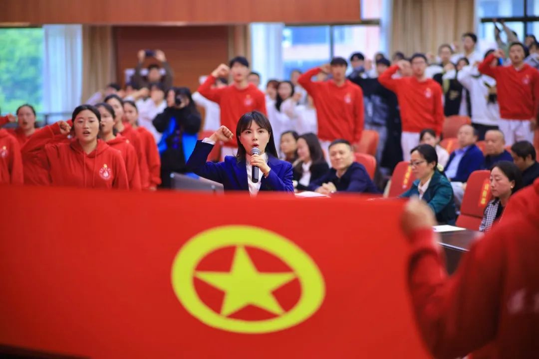 团委副书记余睿带领全体团干、团员面向团旗,重温入团誓词。铿锵有力的宣誓声响彻会场,表达了广大青年坚定跟党走的决心。