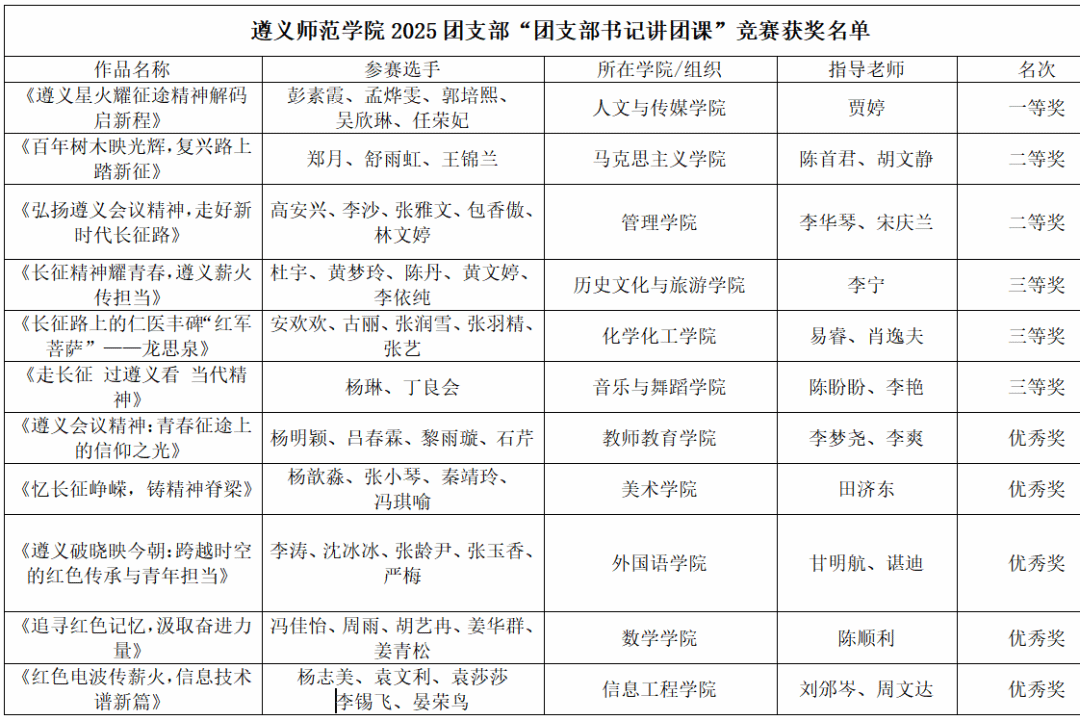 为纪念遵义会议90周年,深入践行习近平总书记“传承红色基因,讲好遵义故事”的殷切嘱托,充分发挥共青团在高校学生思想政治工作中的主力军作用,全面提升团支部组织力,强化团支部政治功能。5月15日,由校团委主办,校学生会承办的纪念遵义会议90周年“团支部书记讲团课”比赛于学术报告厅举行,各二级学院团总支书记(副书记)担任本次大赛评委。