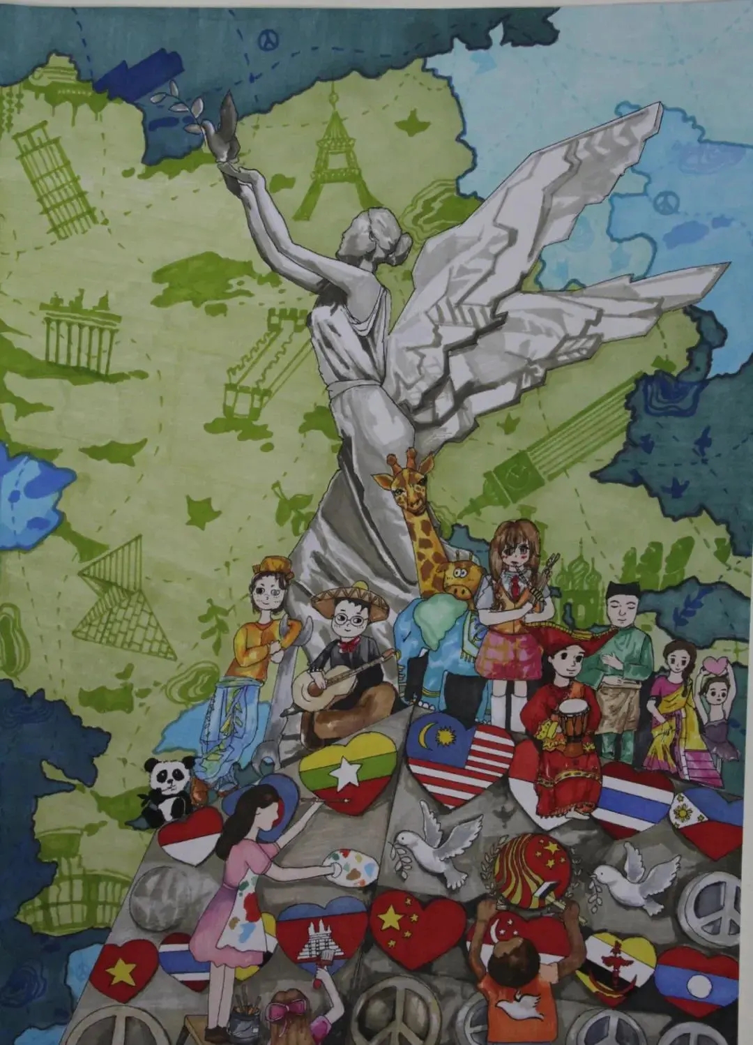 (白羽)丹青浓墨绘真情,青春执笔心连心。绘画作为一种经典的艺术形式,在文化传承和交流中发挥着不可替代的作用。为庆祝中国—东盟合作关系建立30年,传承双边友谊,为睦邻友好关系健康发展注入活力,买球积极参与了由贵州省人民对外友好协会、中国—东盟教育交流周秘书处共同举办的“绘画 友好 未来”中国—东盟青少年绘画展。