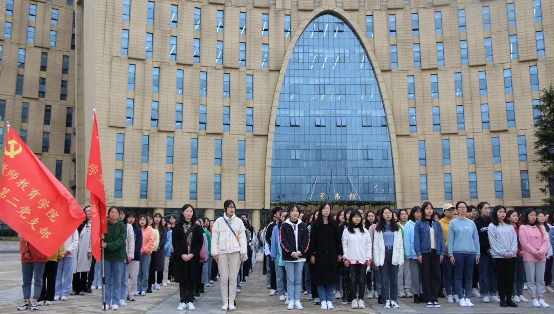 2021年4月26日上午8点,在微信买球官方网站百年广场,教师教育学院党委书记王洪叶、院长朱海以及全体师生隆重集会,举行了“升国旗,讲党史,传承红色基因”活动。在庆祝中国共产党成立100周年,五四爱国主义运动102周年之际,引领全院师生学习党史,永葆初心,锐意进取,不懈奋斗,传承红色基因,激发爱国情怀。