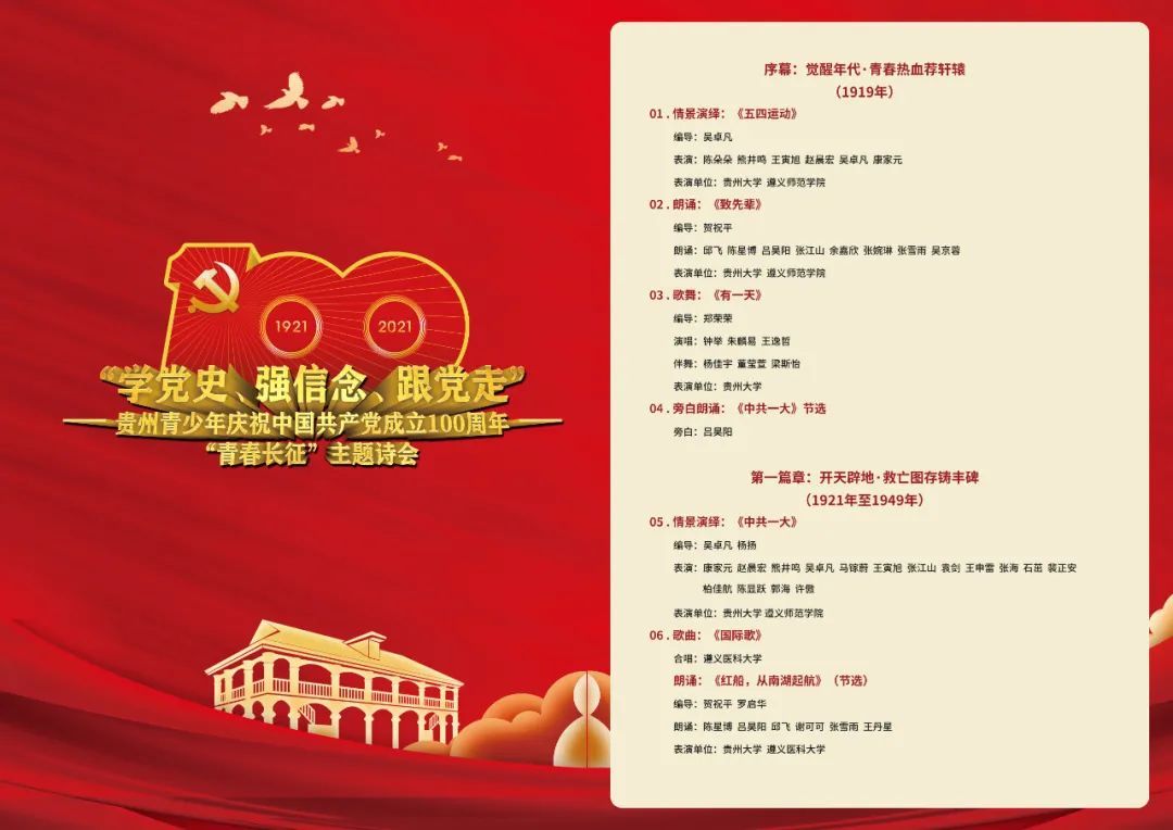 今天,买球77位学生代表参演的由省委宣传部指导, 团省委、省委党史研究室、贵州广播电视台主办的“学党史、强信念、跟党走”贵州青少年庆祝中国共产党成立100周年“青春长征”主题诗会将在贵州4大众生活频道开播。买球青年邀您共赴盛会!