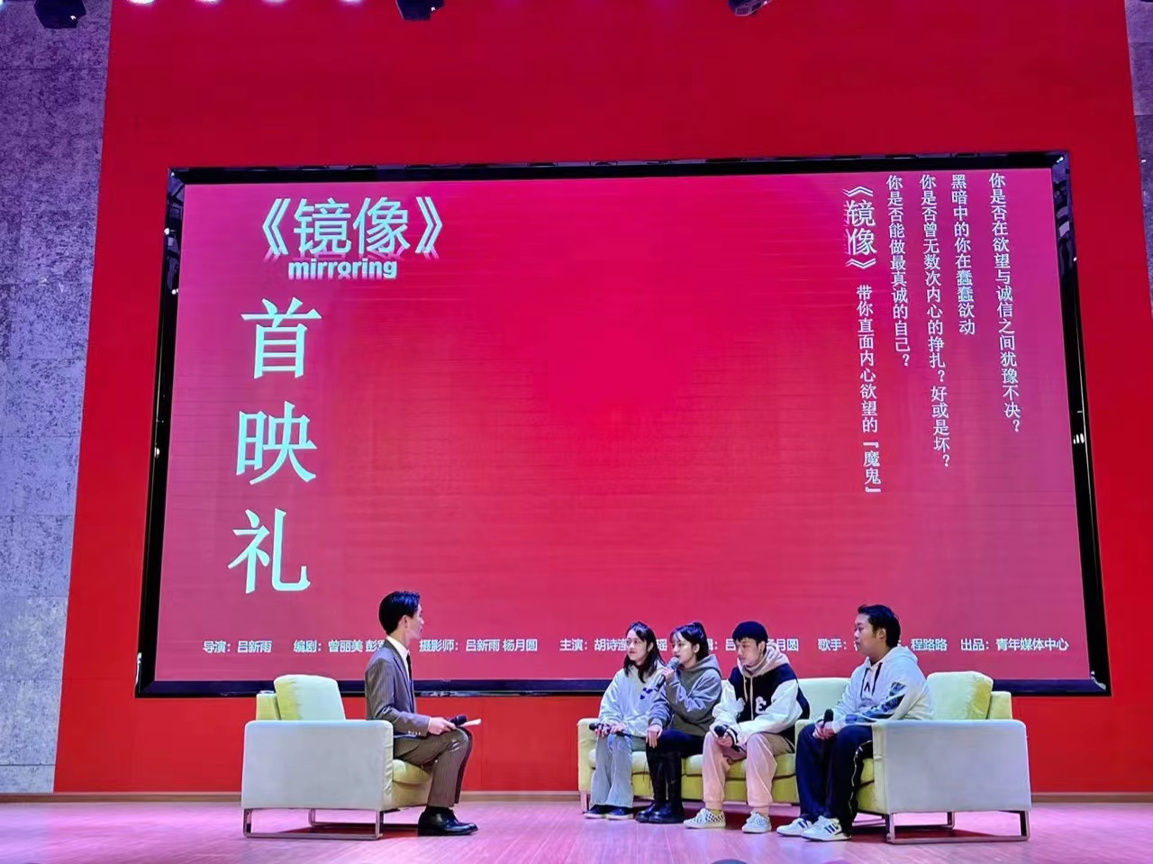 首映礼上,电影主创和大家分享了创作和拍摄过程中的趣事和难忘经历,纷纷表示通过参与创作这部微电影,体会原创精神和团队力量,希望以后能够以更多的形式,表达青年的想法与态度。希望«镜像»能够感染观众以求真务实的态度行事,在艰难抉择时站稳脚跟。(文/喻虹 图/黄符倩)