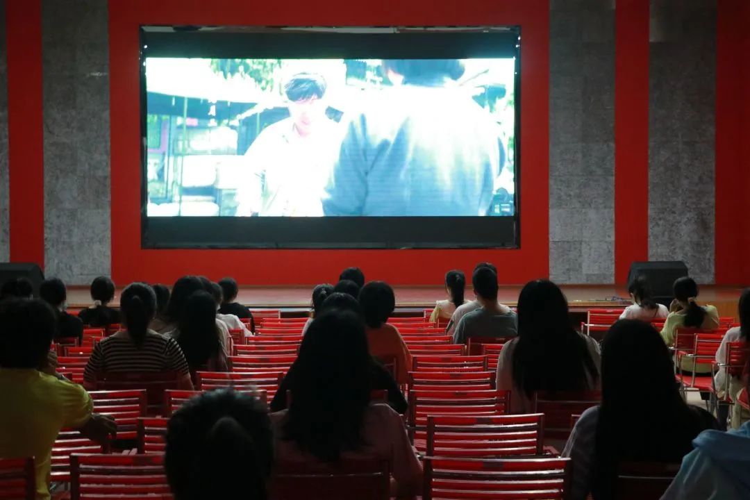 观影活动现场,同学们有序就坐,全程佩戴口罩。当电影里一幕幕难忘的历史瞬间出现在荧幕上,同学们无不注目凝神、热血沸腾,虽然很多同学是重温这部影片,但依然会在国歌奏响的那一刻热泪盈眶,这泪水源于对祖国的热爱,源于一种与生俱来的力量。