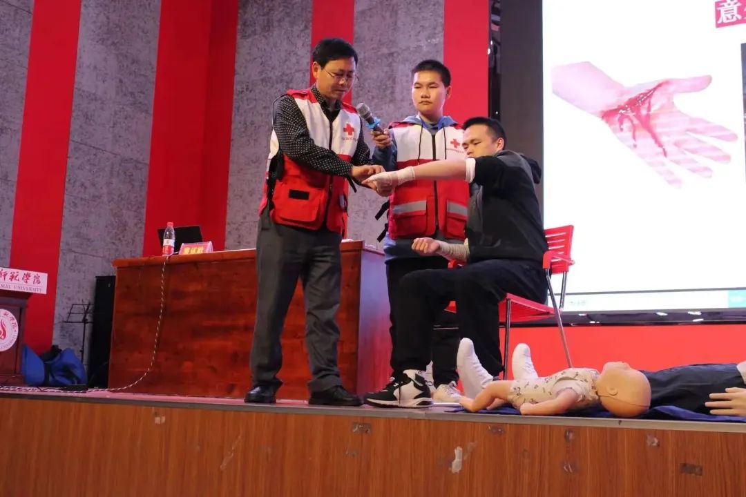 2023年3月5日是第60个学雷锋纪念日,为贯彻落实习近平新时代中国特色社会主义思想和党的二十大精神,大力传承和弘扬雷锋精神,提高大学生志愿者的应急救护以及服务社会的能力,3月5日上午在买球长征讲堂举办了“赓续红色血脉 传承雷锋精神”系列活动之应急救护培训。本次活动由微信买球官方网站团委主办,微信买球官方网站红十字会与青年志愿者服务中心承办,中国红十字总会应急救护培训师龚诗伦主讲,线上线下近700名学生参与培训。