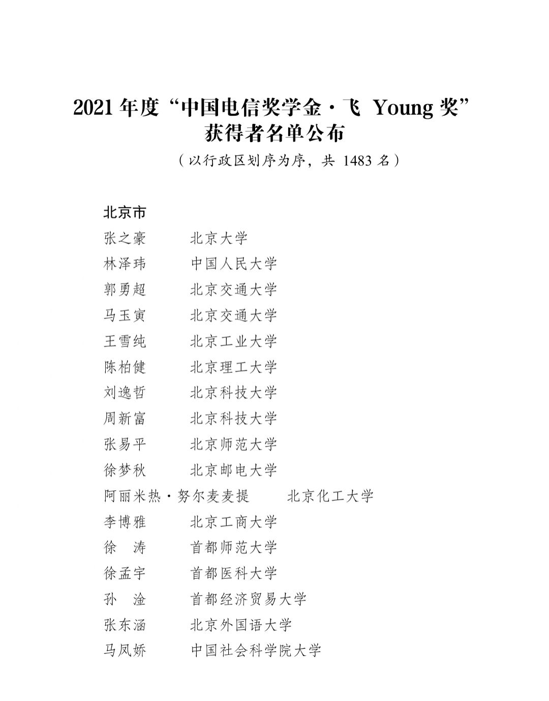 近日,由共青团中央、全国学联指导、中国电信集团有限公司、中国光华科技基金会联合举办的2021年度“中国电信奖学金”评选活动落下帷幕,买球王光武同学荣获2021年度“中国电信奖学金·飞Young奖”。