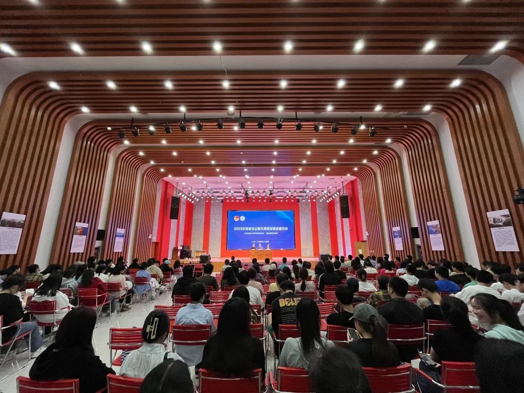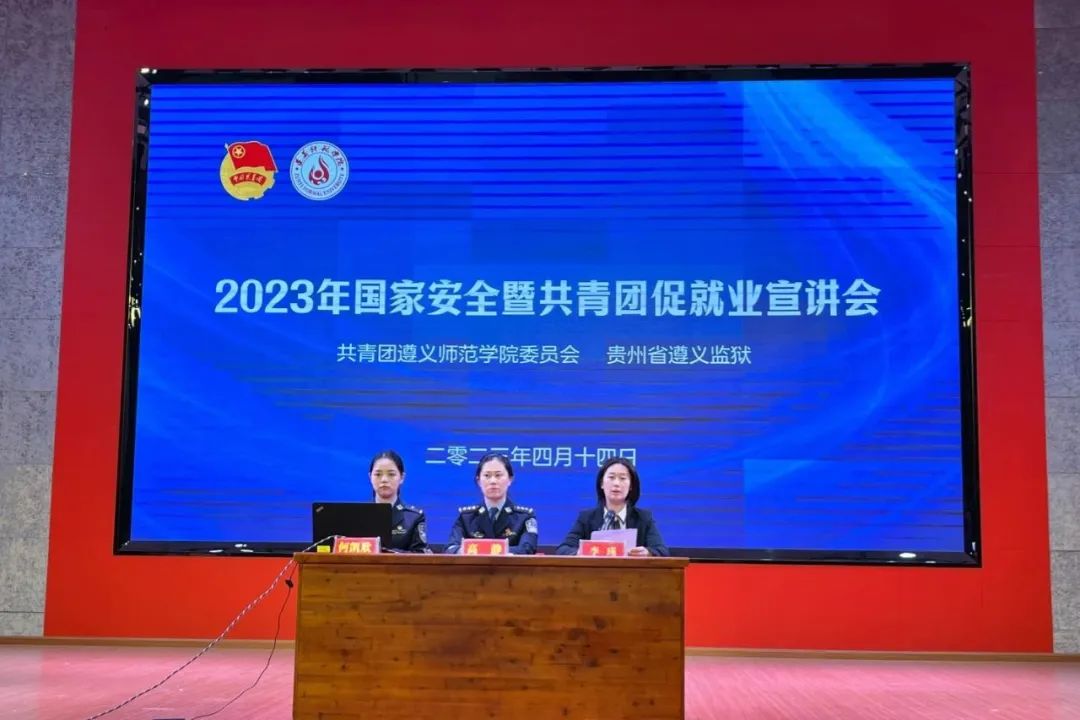 2023年4月14日下午,微信买球官方网站团委与贵州省遵义监狱联合开展2023年国家安全暨共青团促就业宣讲活动。微信买球官方网站团委副书记李瑾,贵州省遵义监狱人事警务科科长、团委书记高静,遵义监狱人事警务科一级警员何凯欣以及200余名学生代表参加活动。