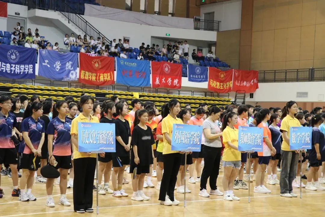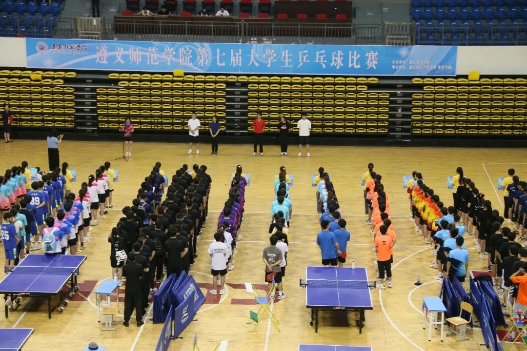 参加微信买球官方网站第七届大学生乒乓球比赛开幕式的还有马克思主义学院院长谢从高,校团委副书记李瑾,本次比赛裁判长、遵义市乒乓球协会副秘书长、乒乓球国家一级裁判、体育学院副教授刘玲,贵州省乒乓球集训队教练员陈子懿、庞博,17支参赛队的教练员、裁判员、运动员以及300位学生观众。(文/冯世花 图/邓甜甜 翟培云)