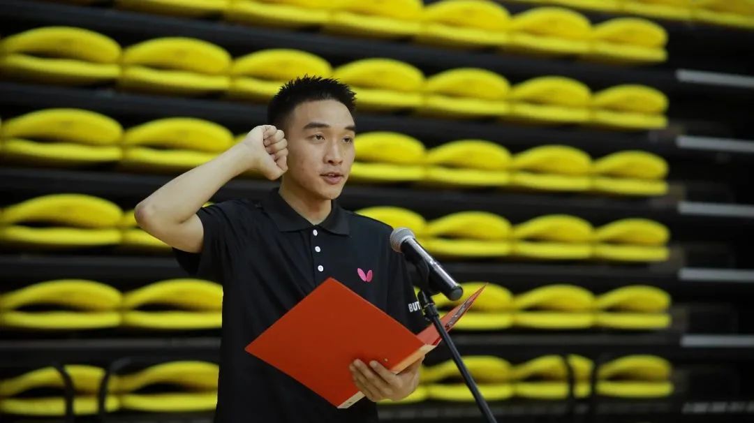 黎鸿飞和张嘉豪分别代表裁判员和运动员宣誓。承诺在比赛过程中,遵守比赛规则,执裁公平公正,比赛和谐友善。