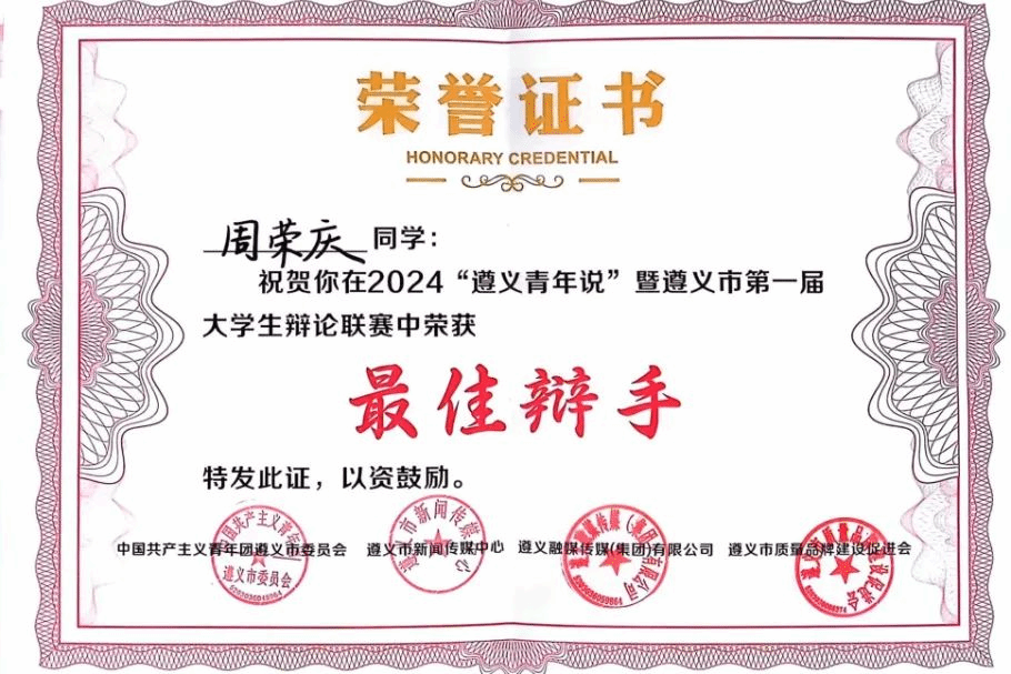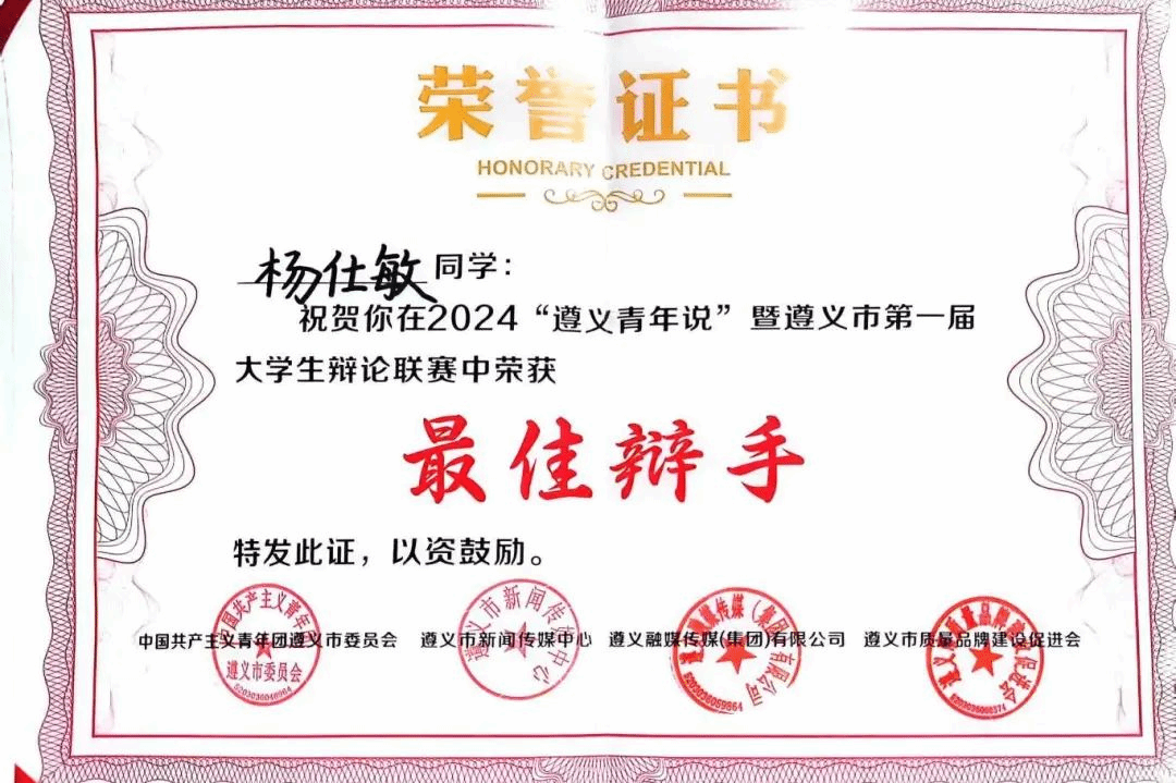 6月16日,由共青团中央·未来网指导,共青团遵义市委、遵义市新闻传媒中心主办,遵义融媒传媒(集团)有限公司、遵义市质量品牌建设促进会承办的2024“遵义青年说”暨遵义市第一届大学生辩论联赛在遵义市新闻传媒中心演播厅落下帷幕。在校团委的组织下,由罗筱娟老师指导的微信买球官方网站辩论一队在比赛中获得了亚军。杨仕敏、周荣庆获得比赛最佳辩手,买球获得“最佳组织奖”。(图文 | 胡倩 排版 | 胡倩 初审 | 罗星 复审 | 敖正雅 终审 | 余睿 李瑾)