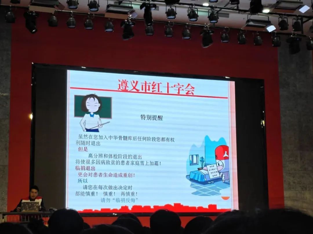 讲座特别邀请了遵义市红十字会罗福军,他不仅详细介绍了红十字运动的背景和造血干细胞捐献的流程,还耐心解答了同学们的疑问。通过罗福军的讲解,同学们对红十字会和造血干细胞捐献有了更深入的了解,同时也消除了对捐献过程的误解和恐惧。